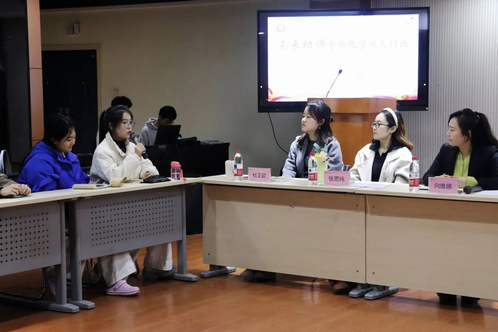 随后,各班班委代表围绕班级学风现状与问题展开交流,分享了在出勤督查、学习氛围营造、活动参与等方面的经验与改进思路。部分班级代表就请假率偏高、个别学生迟到旷课、班级凝聚力不强等问题进行了深入剖析,并提出了切实可行的整改举措。阶段性学风先进班级代表进行了经验分享,展示了通过班委协同、榜样示范、及时沟通所取得的良好成效,形成了可推广的“未来幼师”学风建设范式。