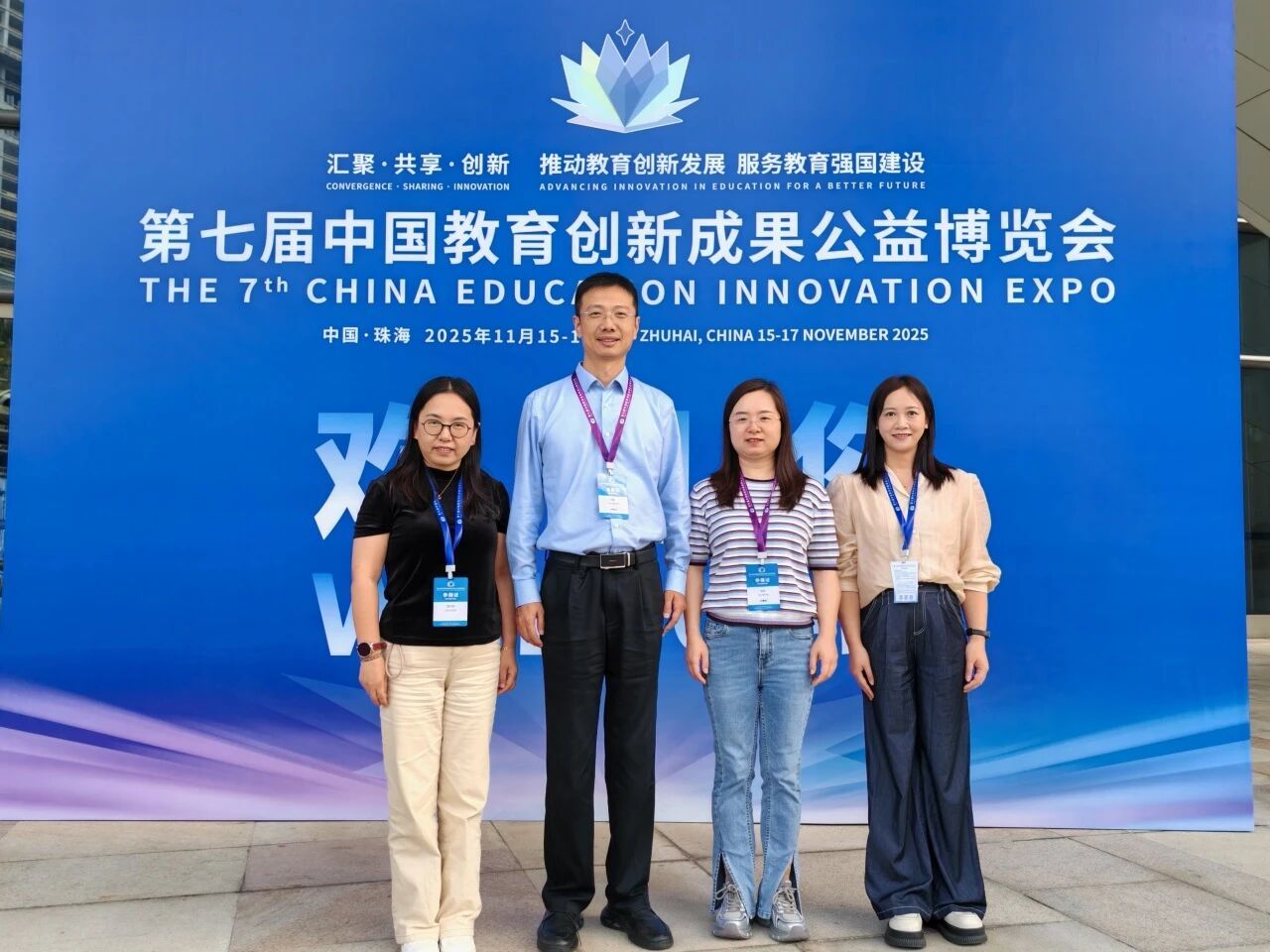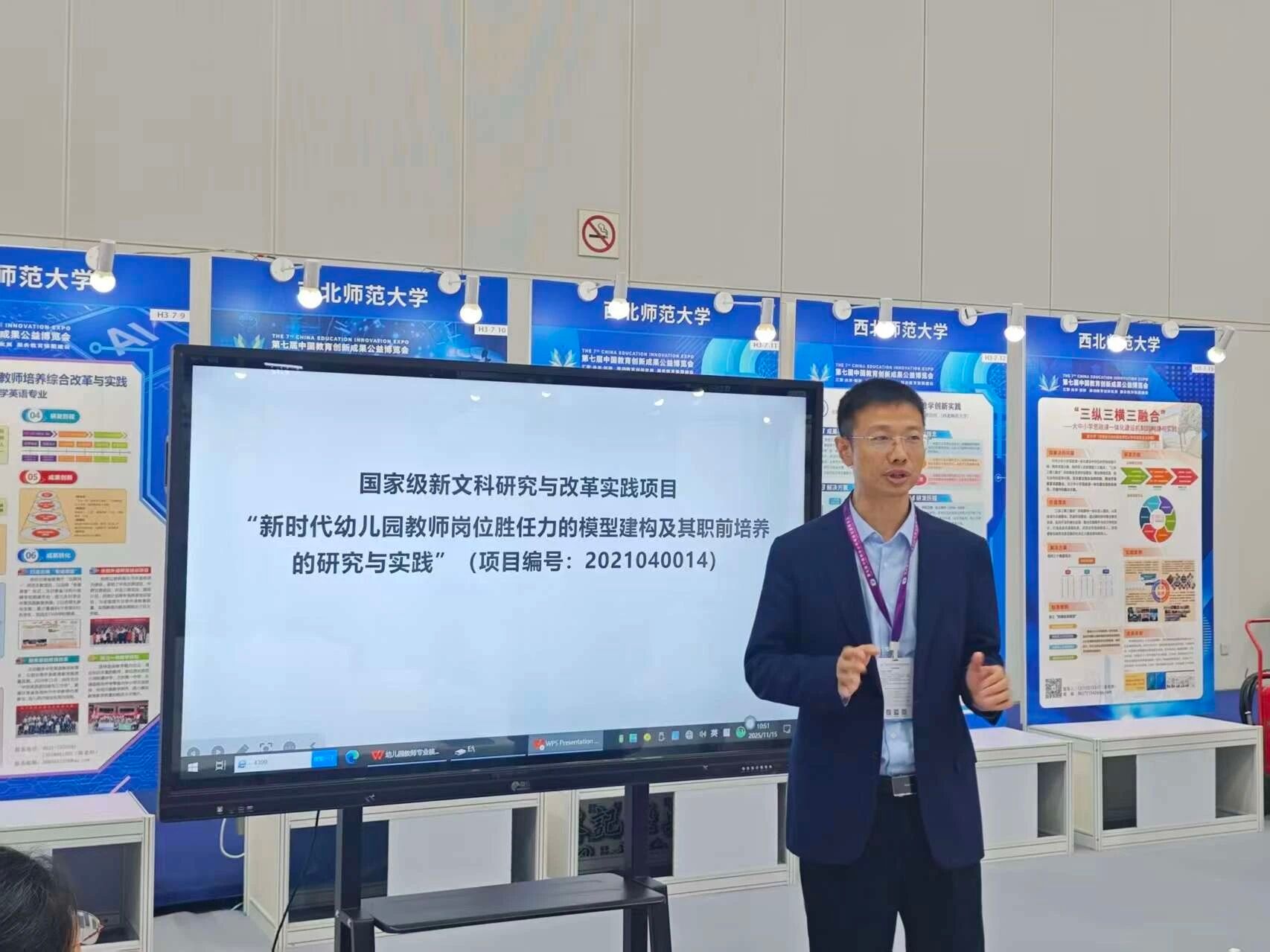 2025年11月15日至17日,学前教育学院蔡军教授团队受邀参加在珠海举办的第七届中国教育创新成果公益博览会,围绕其国家级新文科改革与实践研究项目成果《幼儿园教师专业核心素养研究》和教学成果奖《持续提高幼儿园保教质量的综合评估体系构建与实践》向来自全国各地的参会代表进行了成果展示与经验分享。