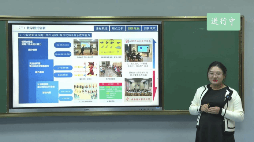 陕西省本科高校教师教学创新大赛由陕西省教育厅主办,是省内影响力最大、水平最高的高校教师教学竞赛。此次比赛从校赛到省赛历经多轮严苛筛选。前期,学校通过校赛遴选出6名参赛教师进入省级复赛,最终仅2名教师进入决赛。备赛期间,学院邀请了全国高校教师教学创新大赛一等奖获得者、西安交通大学周屈兰教授进行了一对一指导。在决赛现场,李帆帆老师围绕《学前儿童音乐教育》课程,系统展示了其团队基于学前教育专业学生特点所构建的“虚实双轮”迭代教学模式,从课程概述、痛点分析、创新途径、创新成效四个方面展开了汇报。