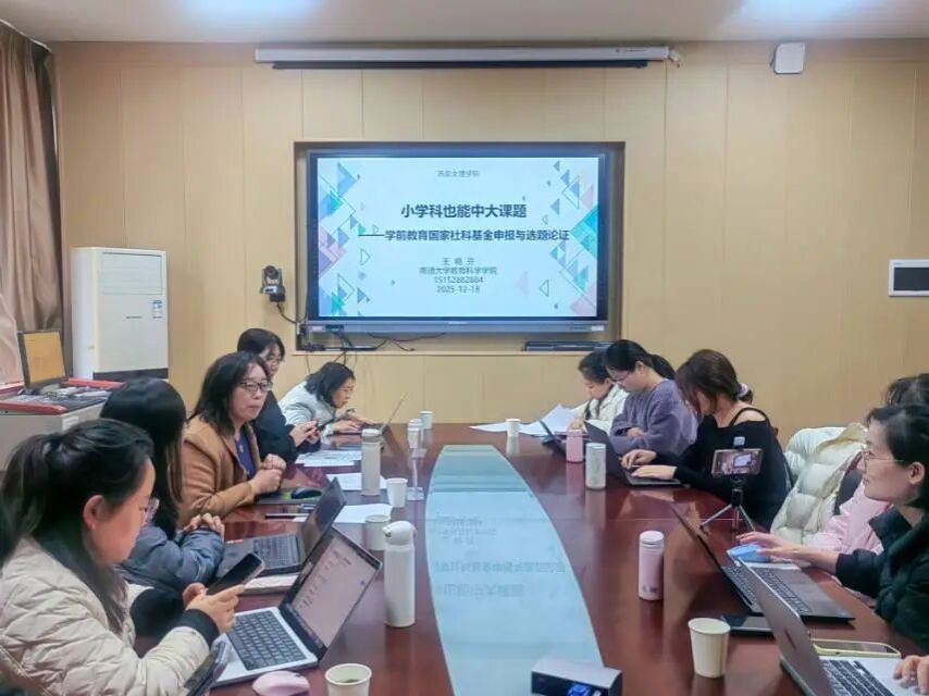 会上,王晓芬分析了近十年以来国家社会科学基金、全国教育科学规划、教育部人文等国家级项目中的学前教育方向选题立项情况,指出现阶段国家级项目申报更聚焦现实需求和强调创新突破,并针对教师们在课题申报中存在的选题凝练、文献综述、研究设计、创新点提炼、预期成果规划等难点问题进行重点讲解。互动交流环节,老师们踊跃提问,对目前拟选定的国家级项目题目从创新性、问题意识、研究思路等方面与专家进行深入交流。