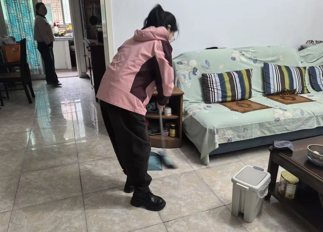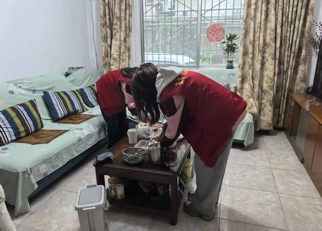 队员们分工有序、配合默契。有的细心擦拭家具、整理杂物,有的认真清扫角落、还有的主动与老人聊天谈心,倾听他们的生活需求。在完成居家清洁后,志愿者们并未停歇,而是迅速投入到社区物资搬运工作中。大家齐心协力,将一袋袋大米、一桶桶食用油、一箱箱面粉等生活必需品,有序搬运至社区指定点位,有效减轻了基层工作者的负担。