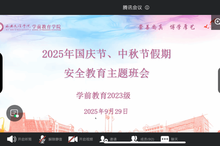 此次双节前安全教育主题班会,既覆盖了假期安全的共性要点,又精准对接了学院不同群体学生的个性化需求,让安全意识真正入脑入心。愿全体学前学子在享受双节假期的同时,时刻紧绷安全之弦,平安、愉快度过假期,以饱满的精神状态迎接节后的学习与工作。