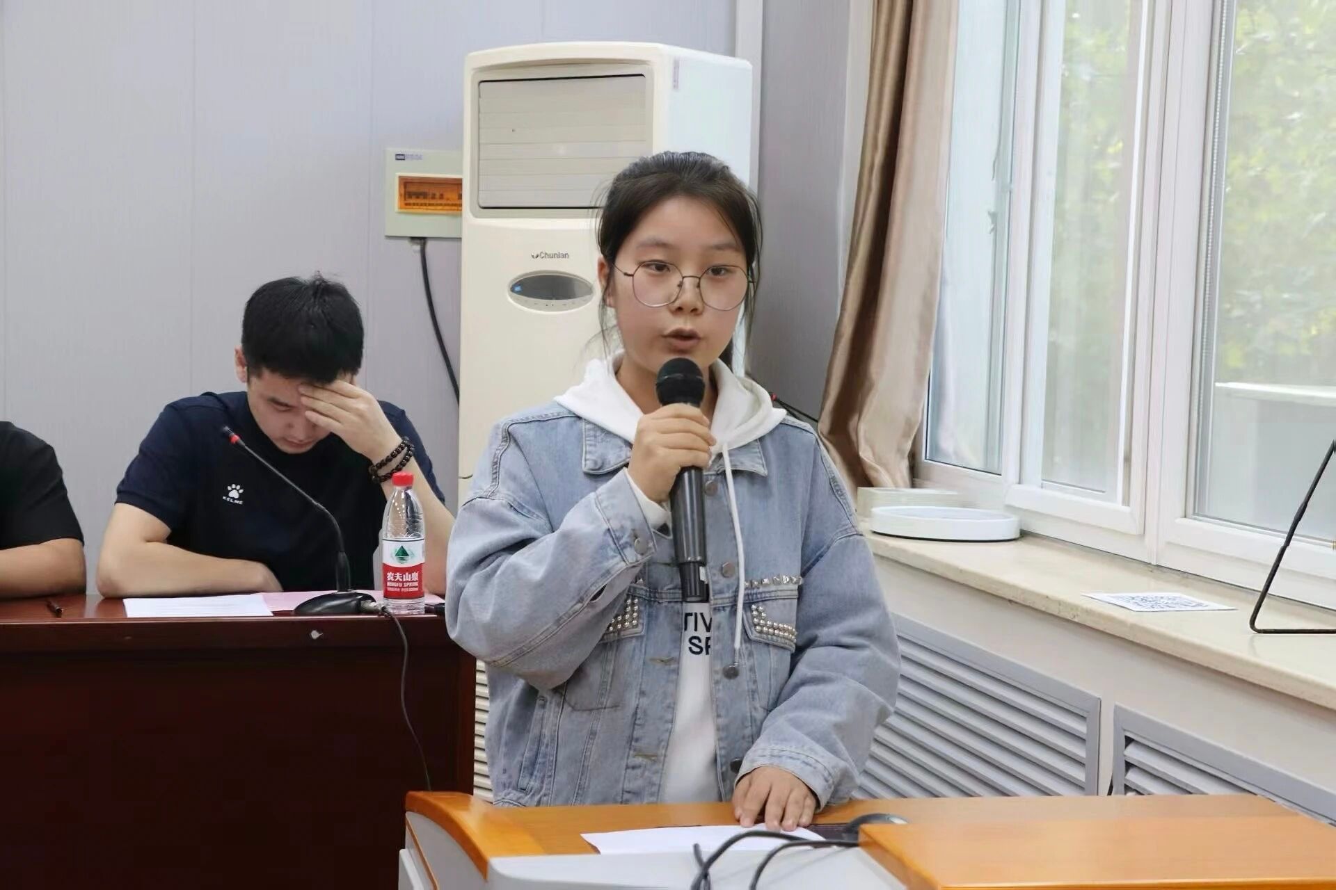 随后,分团委书记张思纯发言。她重点宣布新学期将推行为期三个月的 “积分制” 管理办法,通过量化考核激励成员主动担当,并特别指出,积分评定不仅关注个人工作成效,更将部门协作度、团队贡献值纳入核心指标,以此引导全体成员树立 “一盘棋” 思想,在互助协作中提升整体工作效能。同时,张思纯从基础素养、技能提升、沟通反馈三个维度对新成员提出具体要求,她强调:“学生干部的成长,始于每一件小事的认真落实;团队的凝聚力,源于每一次任务的并肩作战。希望大家以实干立身,在相互支持中共同进步。”