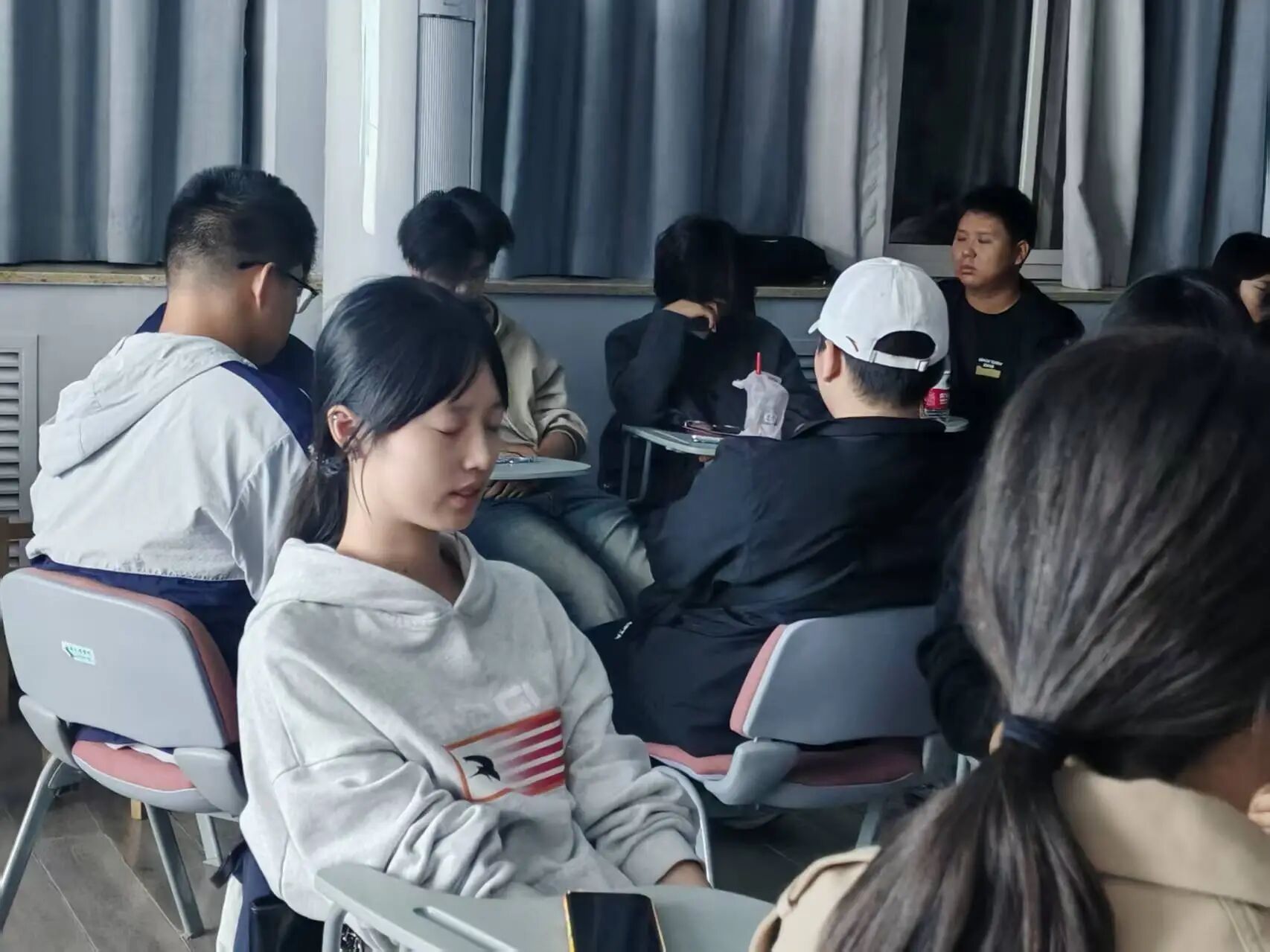 在轻柔的引导语中,同学们闭上眼睛,在“何处归”环节开启一场沉浸式冥想之旅。大家搭乘“时光列车”,缓缓驶向未来四年的大学生活。在静谧的氛围里,每个人在心中探索属于自己的成长路径,提前“遇见”可能的挑战与收获。这段旅程不仅帮助新生以更从容的心态展望前路,也为接下来的目标规划奠定了情感基础。