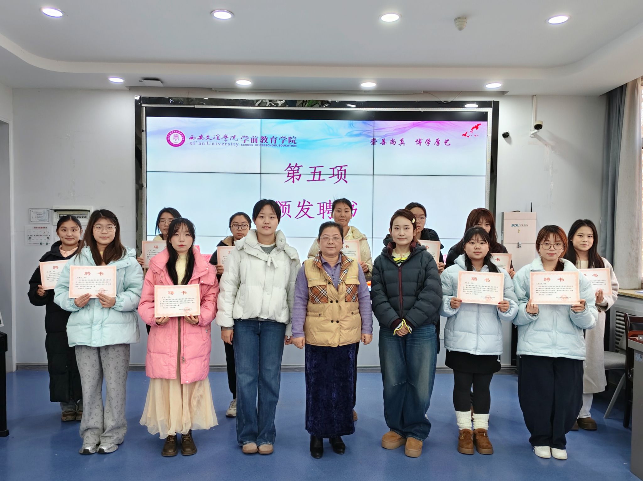 大会最后,评委老师们为新一届招生志愿宣讲团成员颁发聘书,一纸聘书既是认可,更是责任。未来,新一届宣讲团成员将带着学校的期许,走进各地中学讲述学校故事、传递专业魅力,吸引更多怀揣教育梦想的学子加入学前教育大家庭!