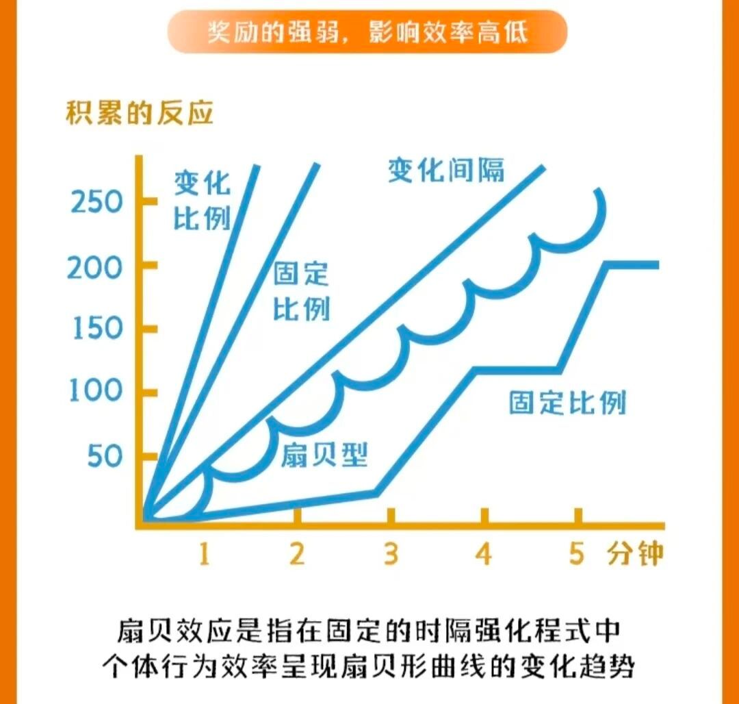 扇贝效应是心理学家斯金纳提出的心理现象。当个体知道在固定时间或特定节点会获得奖励、避免惩罚时,行为频率会在节点临近时达到高峰,形成类似扇贝的曲线波动。