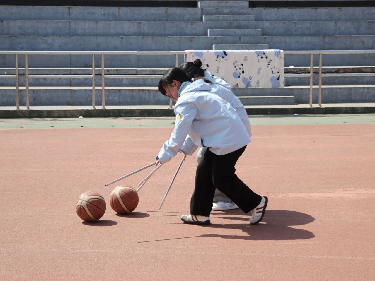 用棍子推球绕杆,球不能离杆太远,杆不能碰球太轻。力度和角度的微调,比看起来难得多。