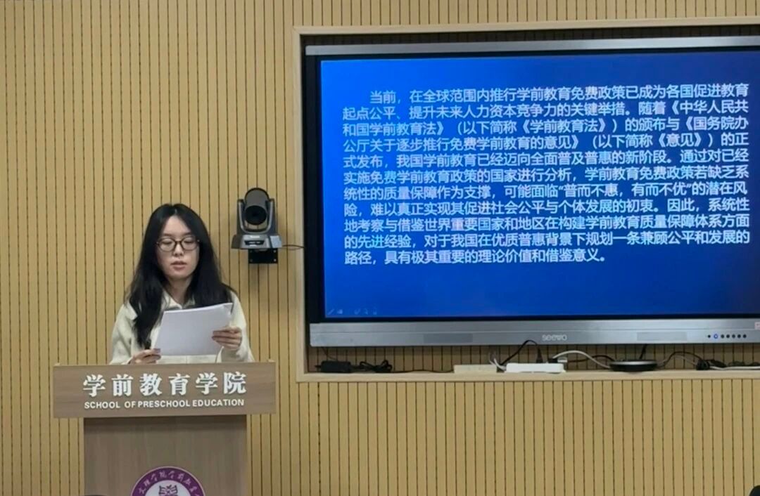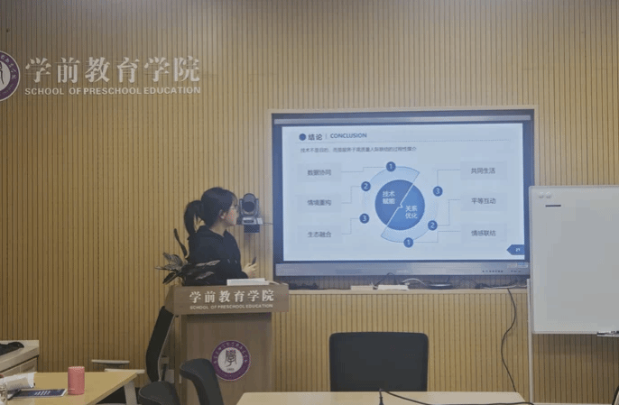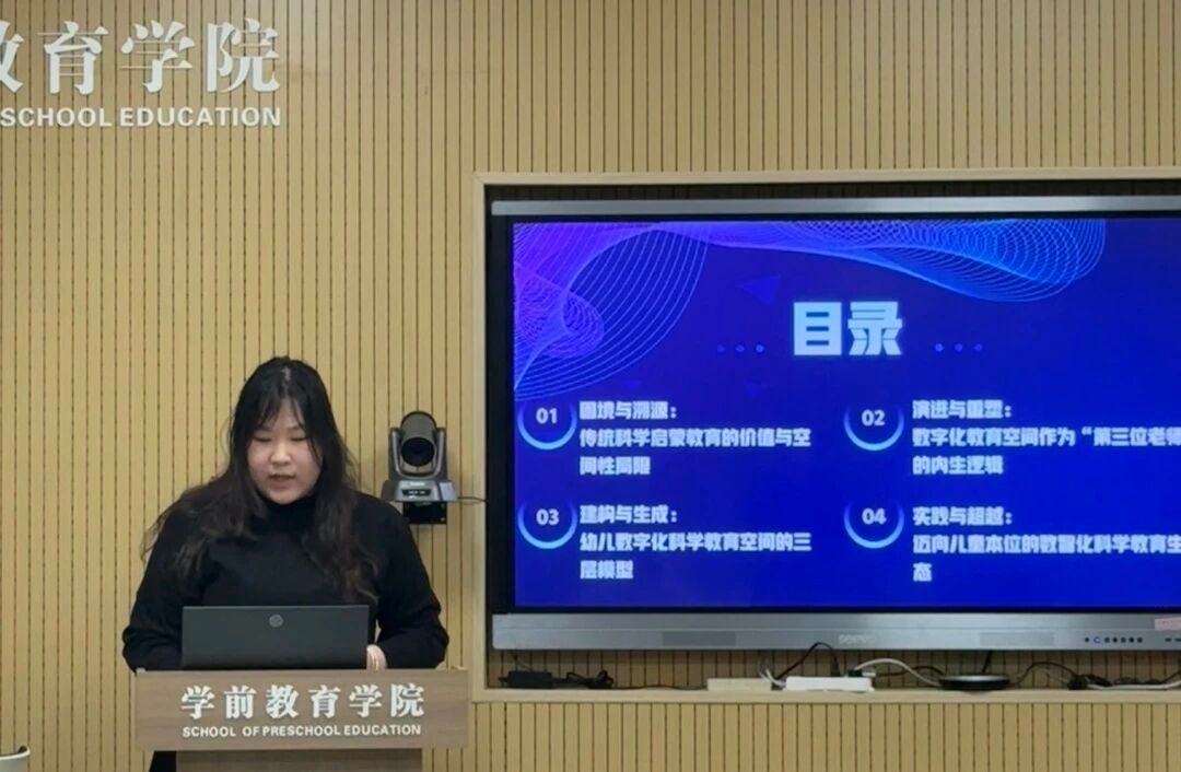 研究生们依次围绕人口结构、数字化教育、技术时代的师幼关系构建、教师情感与人工智能整合能力、教育空间及普惠政策等前沿议题进行了学术汇报。与会导师们进行了细致反馈,强调在关注技术、政策的同时,始终不能脱离“幼儿为本”的学科根基。在研究中注重“扎根现实、眺望未来”,寄语同学们在未来的研究中进一步拓宽理论视野、深化实证探索。在自由提问环节,同学们踊跃发言,与导师们展开了热烈讨论,现场学术气氛浓厚。