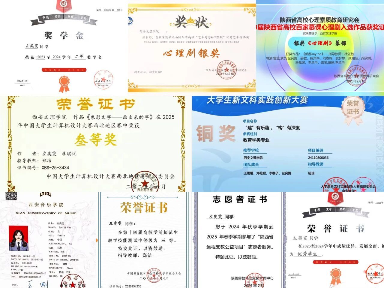 1.团体作品《象形文字——画出来的字》获第十八届中国大学生计算机设计大赛西北地区赛三等奖;