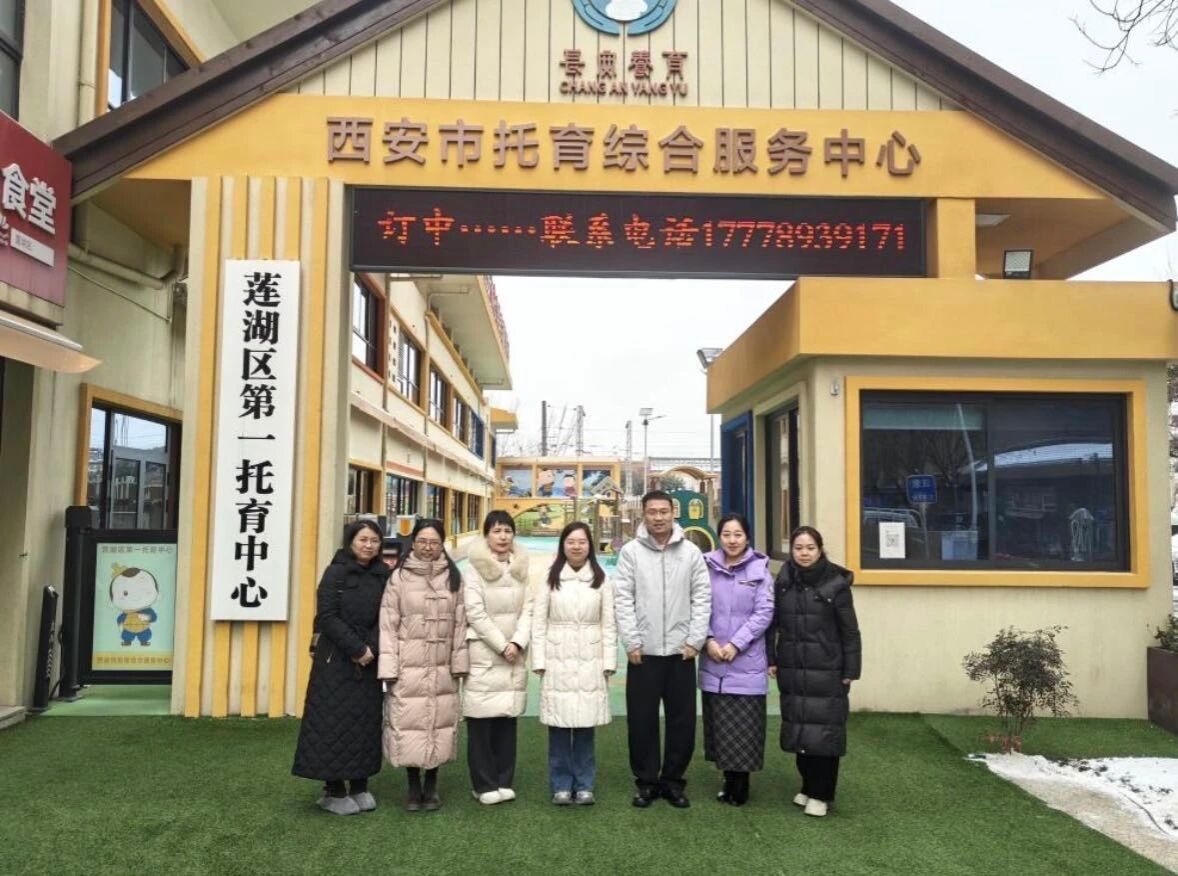 为深化托幼一体化人才培养,对接行业前沿需求,2026年1月20日,学前教育学院院长路娟带队赴西安市托育综合服务中心进行调研交流。副院长雷巧娟、项目管理中心乔娜及婴幼儿发展与健康管理微专业骨干教师代表共同参与调研。