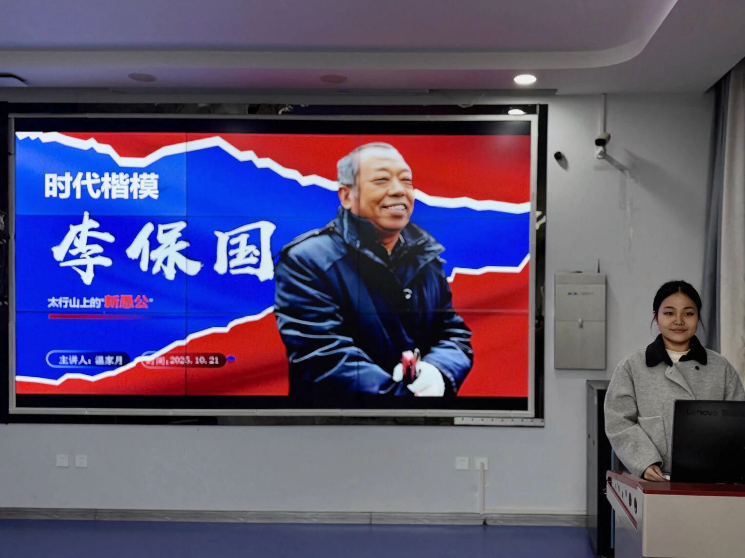 为深入学习教育家精神,传承教育初心使命。学前教育学院学生党支部于2025年10月21日在弘文楼H0201举办了以“新愚公”为镜——李保国”主题微党课。本次党课由学生第一党支部党员温家月主讲,带领全体支部成员共同走进“太行山上新愚公”的精神世界,感悟其“把论文写在大地上”的毕生坚守。