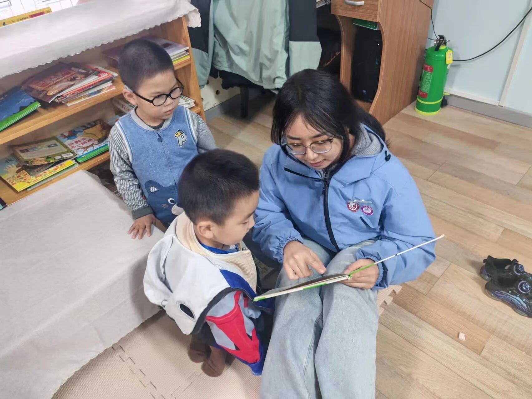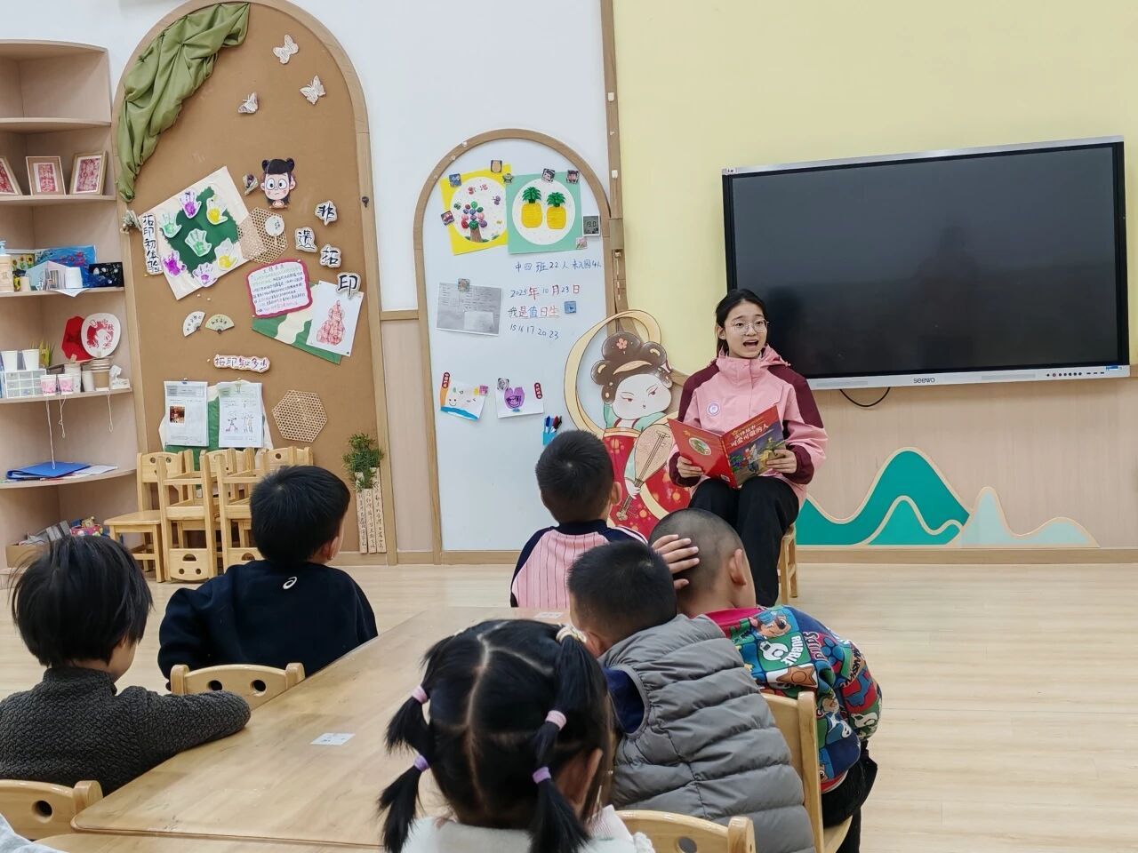 作为“红烛幼教”育人体系下的学生党员先锋队,队员们充分发挥专业优势,以“红烛领航”的姿态,结合幼儿认知特点设计宣讲环节:用夸张的语气增强故事感染力,用简单的动作辅助情景呈现,用趣味问答巩固核心认知,让红色教育既符合幼儿年龄特征,又兼具教育深度。从绘本画面的细节解读到故事情节的延伸思考,从革命精神的通俗阐释到爱国情感的自然流露,每一个环节都凝聚着队员们的用心,也让孩子们在沉浸式体验中感受到红色文化的魅力。
